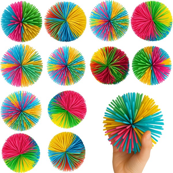 MigWoo Pack of 12 Anti-Stress Balls for Colourful Rainbow Fluffy Ball, Sensory Toy for 3-10 Years, Rubber Ball for Relaxation and Party Gifts, 65 mm Diameter