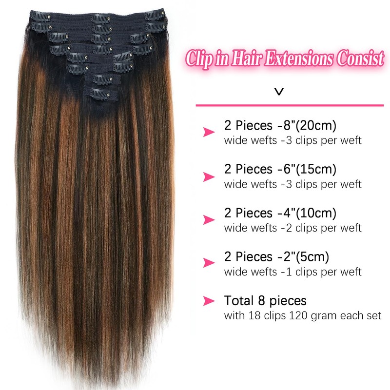 Mihugass Yaki Straight Clip ins Real Human Hair Extensions For Women Highlight Hair Extensions Yaki Straight Clip in Hair Extensions(20inch,T1BP1B/30)