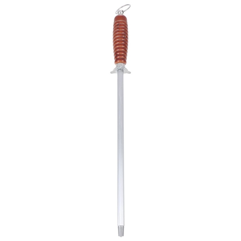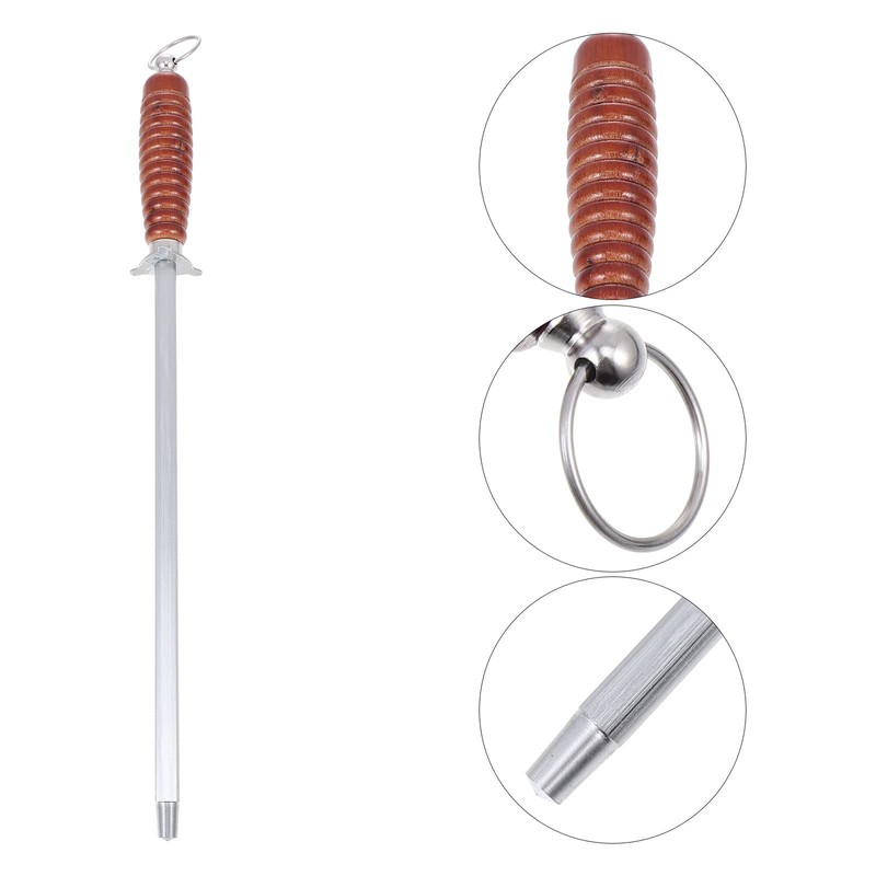 Miibiscolit 12 inch Carbon Steel Honing Rod with Wood Handle, Kitchen Sharpener for Cutting Tools