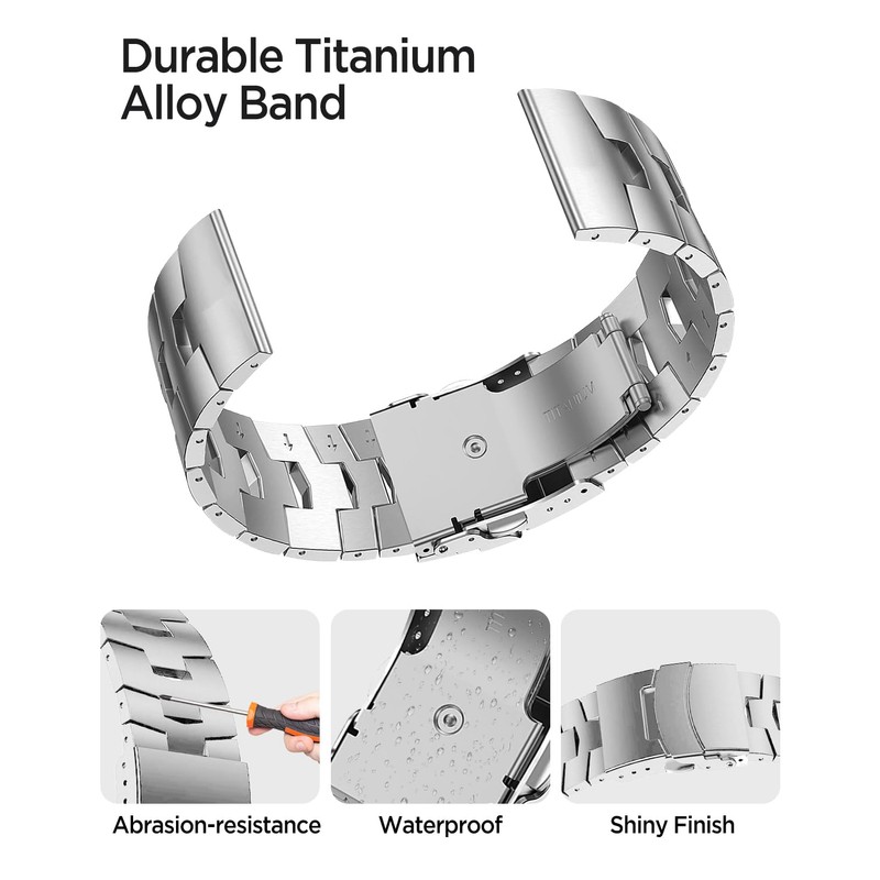 Miimall Titanium Metal Band Compatible for Fenix 8 51mm/Enduro 3 51mm/Fenix 6X Pro/7X Pro/5X Plus,22mm Band for Garmin Fenix 8 47mm/E 47mm/Fenix 6 Pro/7/5 Plus/Forerunner 965. This fenix 8 51mm band is elegant on the wrist, attractive, practical and resistant to wear and tear and is made of titanium. The band can be shortened or lengthened to fit perfectly and comfortably on the wrist.Specifications