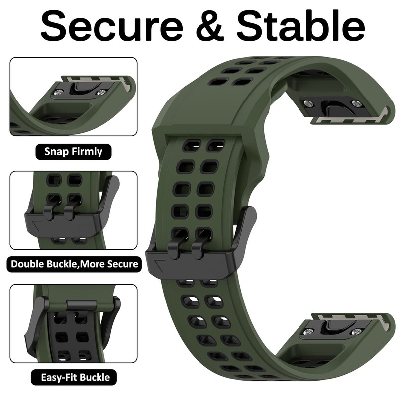 - 【Compatibility】The 26mm silicone watch band compatible with Garmin Fenix 7X/Fenix 7X Solar/Fenix 7X Sapphire Solar, Garmin Fenix 6X/Fenix 6X Pro, Garmin Fenix 5X/Fenix 5X Plus, Fenix 3/Fenix 3 HR/Fenix 3 Sapphire, D2 Delta PX/D2 Bravo/D2 Charlie, Descent Mk1. (Watch NOT included)