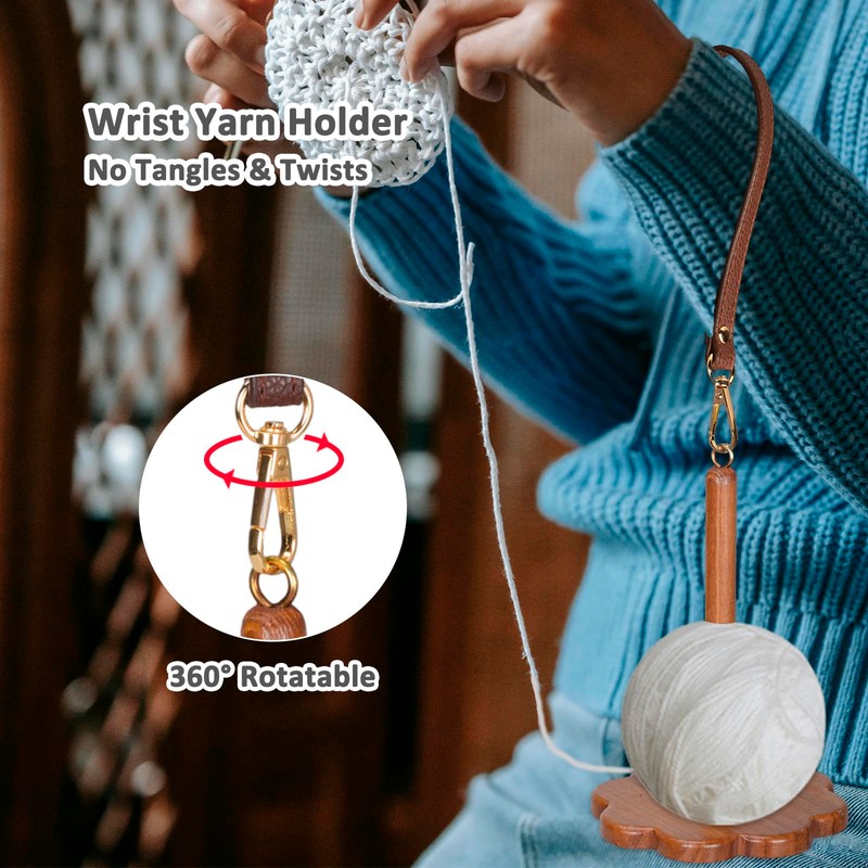 - Durable and Lightweight: This wrist yarn holder is made from solid walnut and has been carefully polished. It is both sturdy and lightweight, weighing just 2.96 ounces. The center rod of the wrist yarn holder features a round design, making it easy to assemble all types of yarn