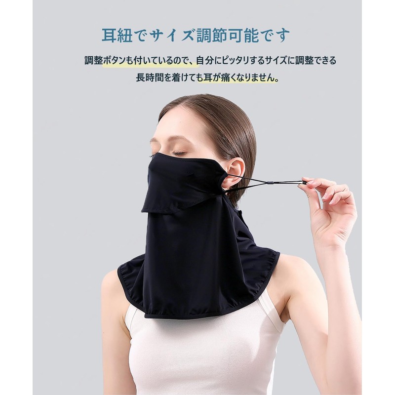 - Prevents sunburn on your face and neck (uses functional fabric with a UV reduction rate of over 98%) and the cheeks are prone to stains