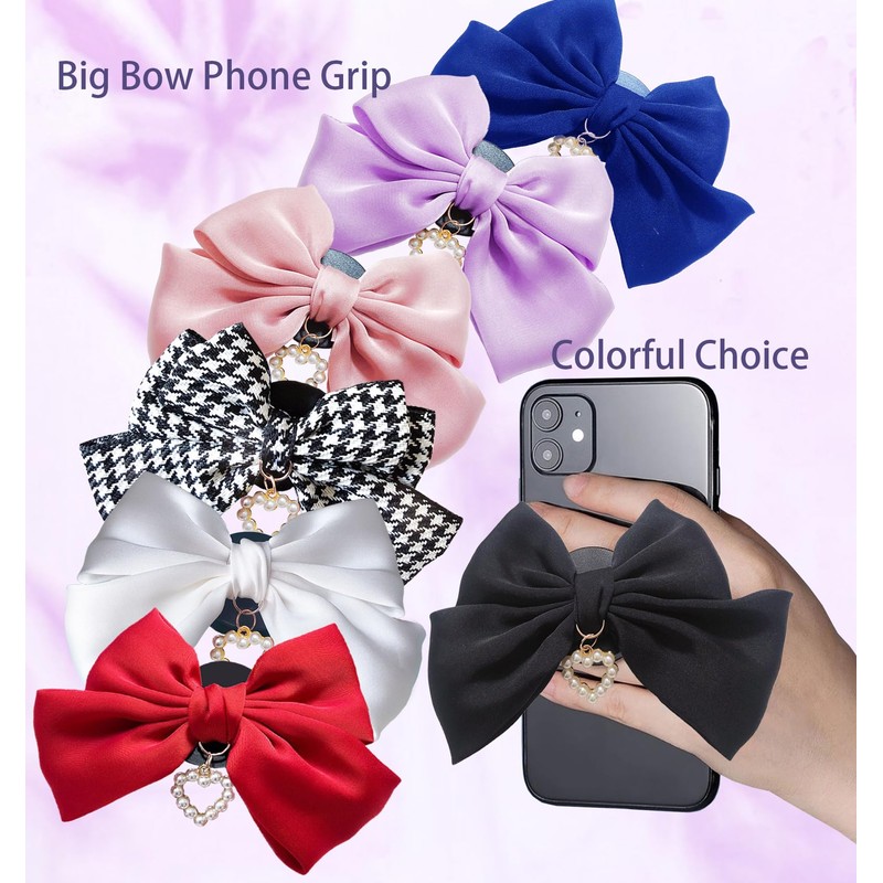 - Rotatable phone grip with cute big bow decoration. Stylish big bow phone charm to show your fashion feeling.