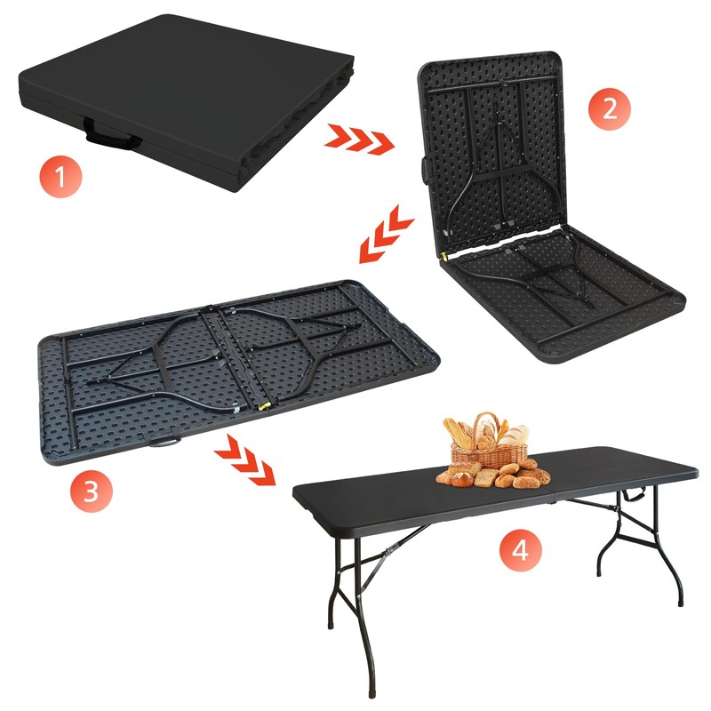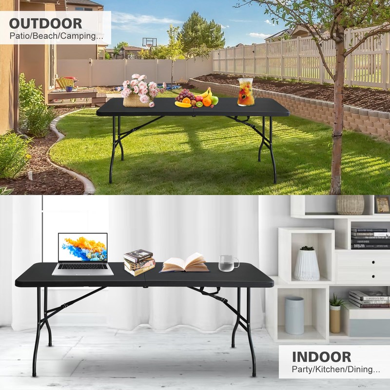 MIIUDGIG Portable 6Ft Plastic Folding Table, Heavy Duty 6ft Fold-in-Half Table with Carrying Handle, 6' Folding Utility Foldable Table for Picnic Party Camping Kitchen, Indoor/Outdoor (Black)