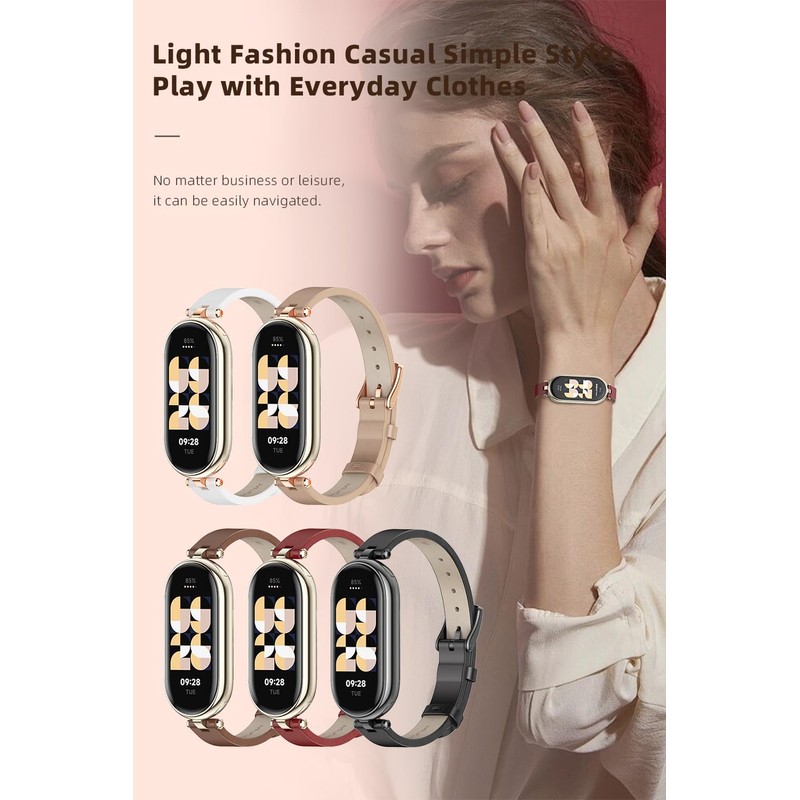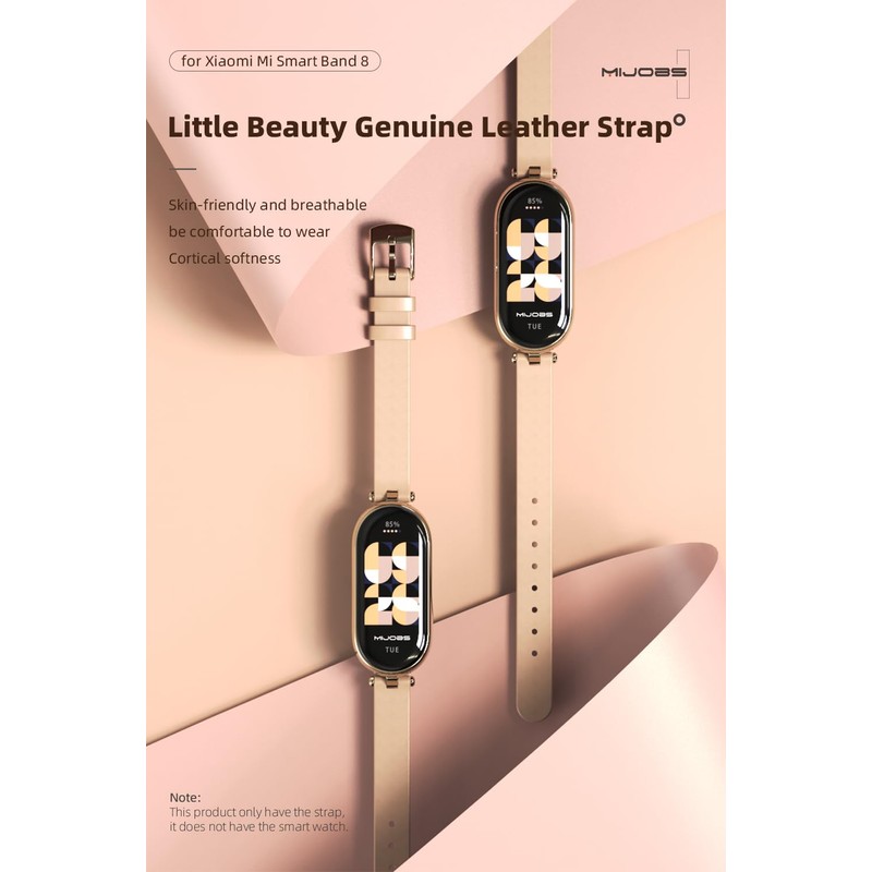 MIJOBS Strap for Xiaomi Mi Band 8 /Mi Band 9 Genuine Leather Replacement Straps for Mi Fit Band 9/8 Breathable SmartWatch Straps Wristband Bracelet