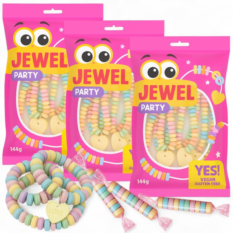 MIJOMA Candy Jewel Party - Vegan Glucose Candy Set of Candy Chains, Bracelets & Rolls - 3 Bags of 144g - Gluten Free, Sweet Chains for Snacking & Gifting, Individually Wrapped