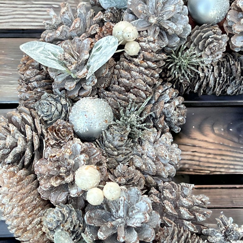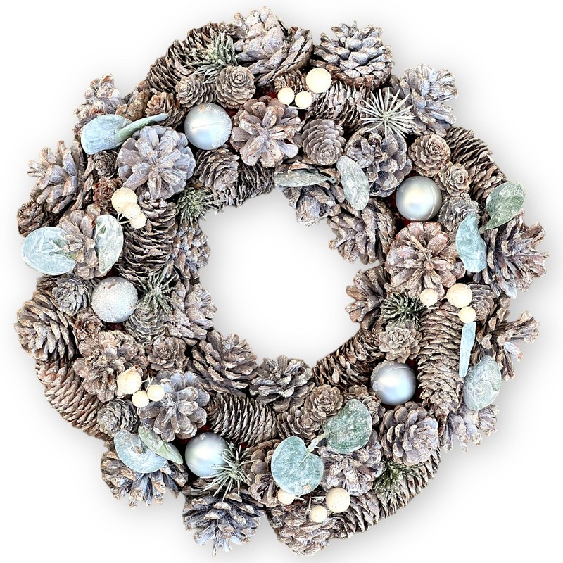 - NATURAL CHARM Experience the combined beauty of real pine cones and artificial fir, complemented by berries, leaves and radiant balls.
