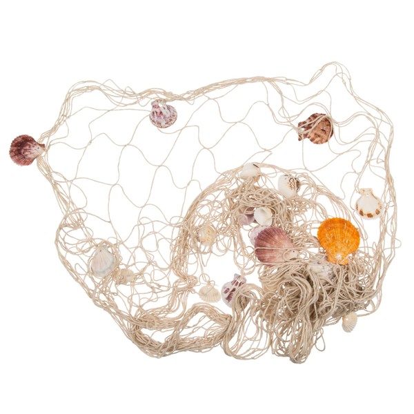 MIJOMA Decorative Fishing Net with Shells, Maritime Flair, 100 x 200 cm, Fish Net, Natural Decor for Home