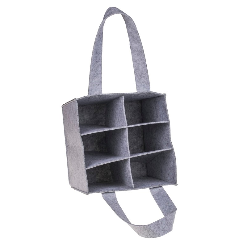 - Our felt bottle bag is a practical and robust tote bag for bottles. It has a water-repellent polyester fabric on the outside and dividers inside to keep your bottles safe and tidy.