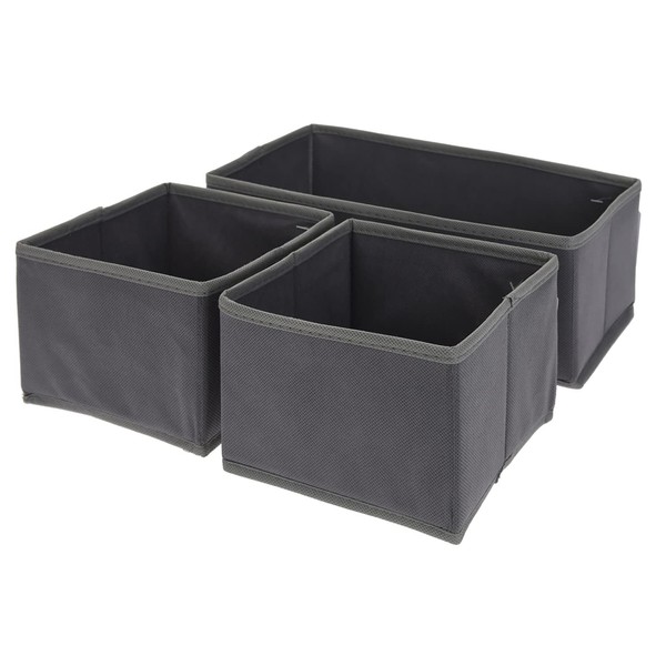 MIJOMA Set of 3 Organisers, Cupboard Organiser, Storage Boxes, Fabric Boxes, Foldable, for Wardrobe, Dresser, Accessories, Cosmetics, Toys, Grey