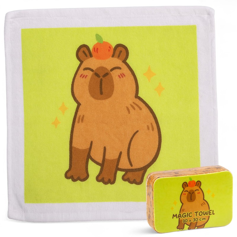 MIJOMA Set of 4 Magic Face Cloths Magic Towel Magic Towel Children's Gift Party Bag Tombola 100% Cotton Unfolds in Warm Water (Capybara)