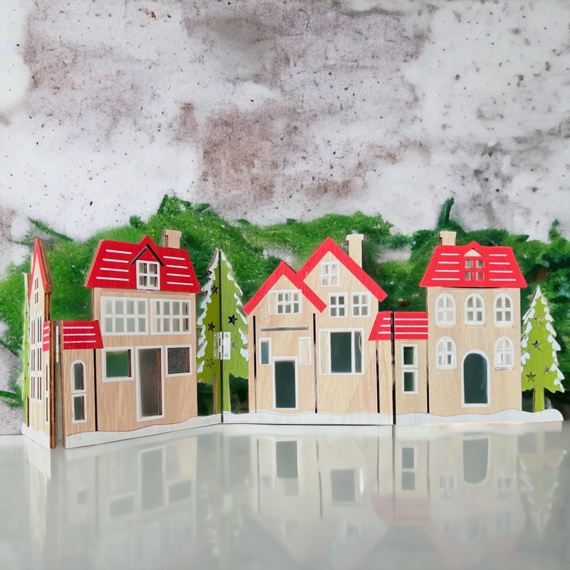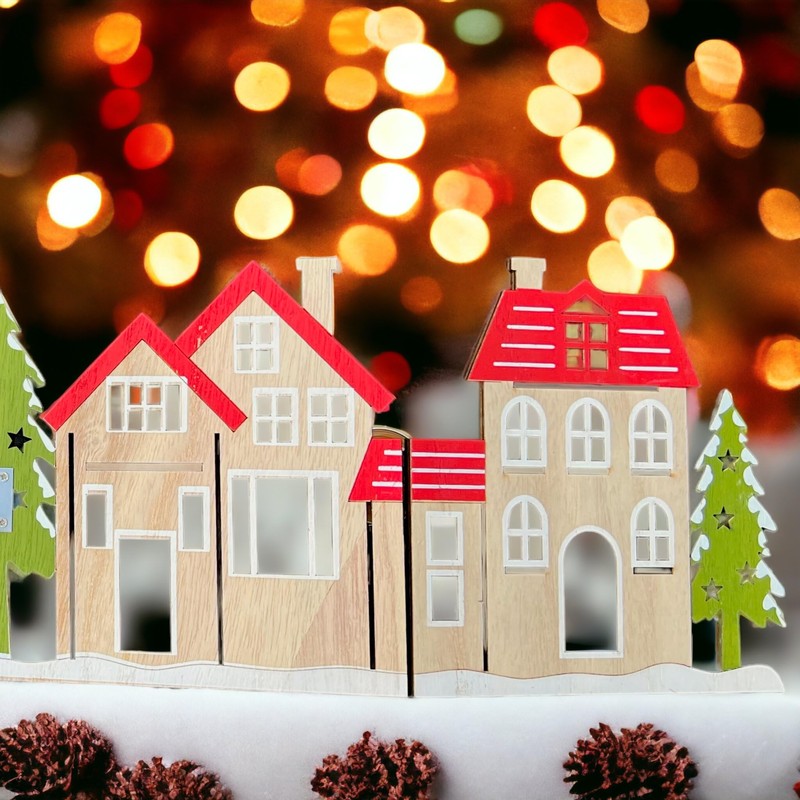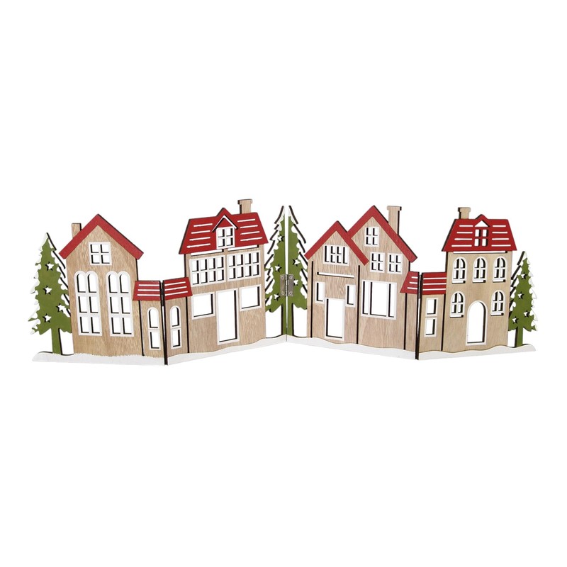 MIJOMA Winter Scene - Christmas Wooden Scene to Stand, 4-Piece Set, to Highlight the Cosiness of Your Home, Ideal for Candlelight (Winter Village - 61 x 16.5 cm)