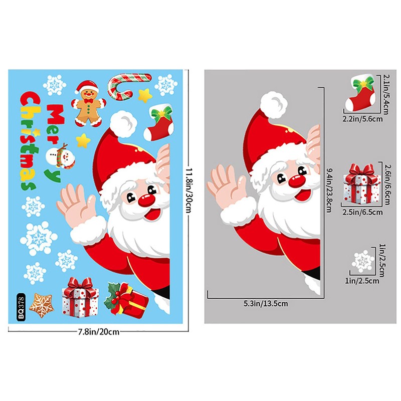 MiJoyDuo 123 Pcs Christmas Window Clings, 6 Sheets Xmas Adorable Double-Sided Removable Static Decals, Decorative Stickers for Christmas Party, Santa Claus Snowman Reindeer Gingerbread Man