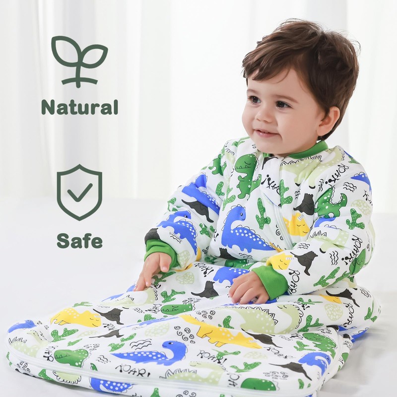 - 【100% Natural Cotton for Cozy Comfort】 Your baby deserves the best sleep possible, and our baby sleeping bag delivers it. Made from 100% natural cotton, our sleeping bag is soft, breathable, and cozy. It wraps your baby in a snug warmth that prevents sweating and overheating, ensuring a peaceful and uninterrupted night’s sleep.