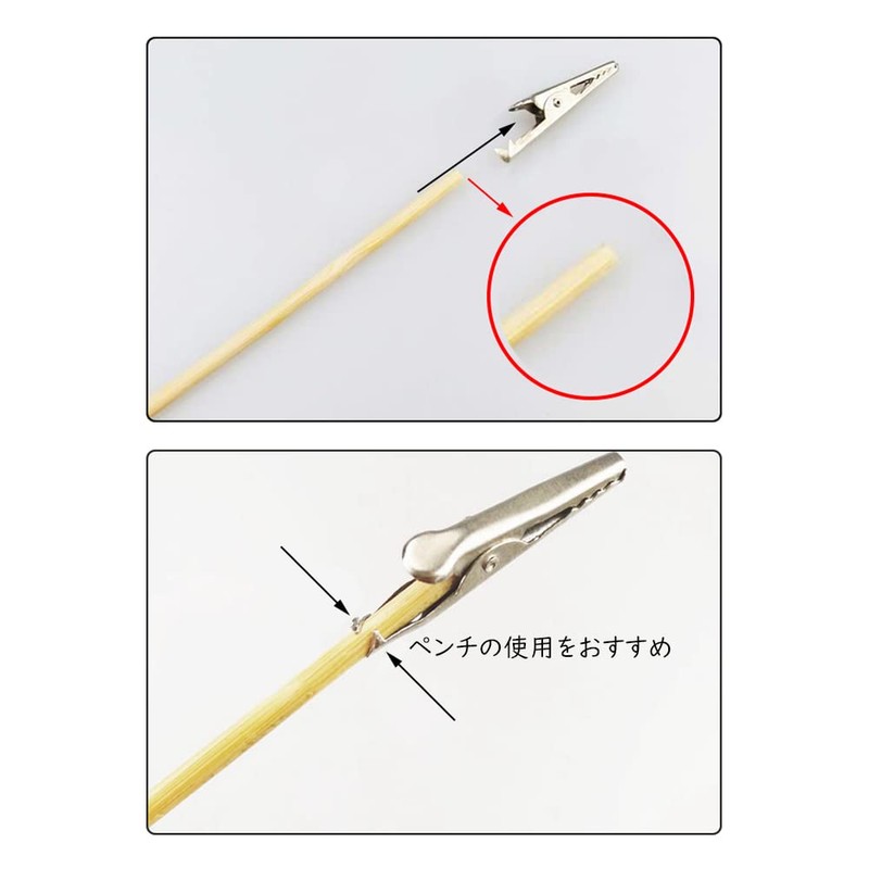 - Assembly: Pass the bamboo skewers through the end of the clip, and use pliers to bend the protrusions on both sides to secure them firmly