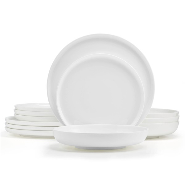 - 12 PIECE SET: includes 4 of each of: 11-inch dinner plate, 9-inch salad plate, and 39-3/4 fluid ounce all-purpose bowl measuring 1-3/4 inches high by 9 inches in diameter