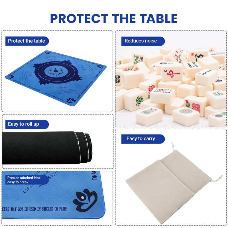 - EASY TO CARRY: Mikccer's mahjong mat is soft and flexible, and comes with carry bag that can be easily rolled up for convenient storage, space saving and easy to carry, do not machine wash, use a soft brush and a damp cloth to clean it, and then dry it naturally.