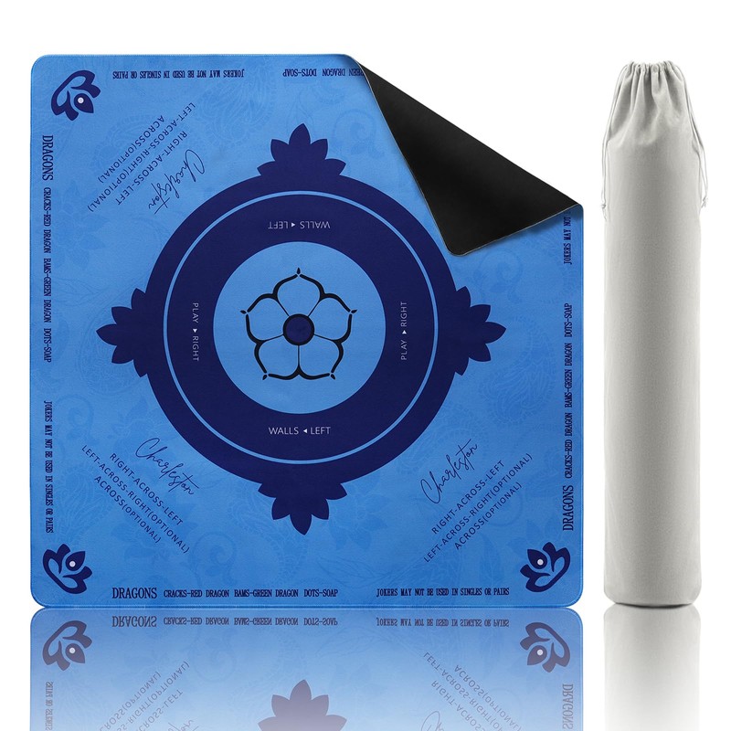 Mikccer Mahjong Mat, 32.2x32.2 Inch Non-Slip Noise Reduction Mahjong Table Mat, Perfect for Poker/Board Games/Card Games/Dominoes with Carrying Bag,Blue