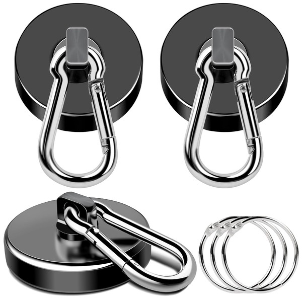MIKEDE Magnetic Hooks, 150LB Neodymium Magnets Heavy Duty with Swivel Carabiner Hooks, Strong Rare Earth Magnetic Hook Hanger, Black Magnets with Hooks for Garage, Kitchen, Cruise Cabin - 3 Pack