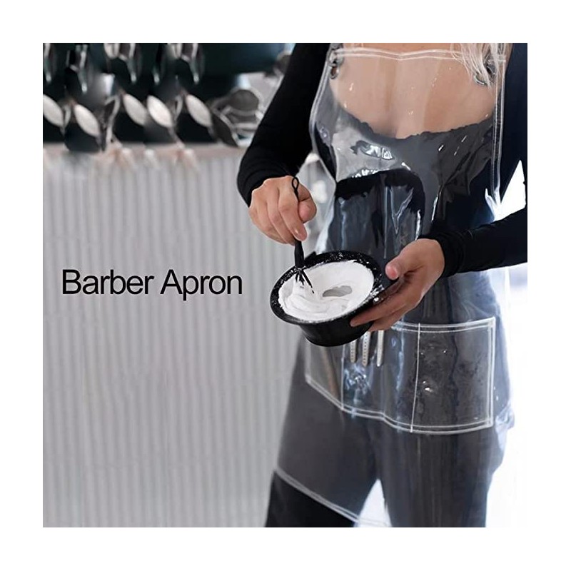 MIKI WELL Cross-back Adjustable Apron With 3 Pockets Hair Salon Work Apron for Hair Stylist (22.8” W 25.5” L), Transparent+khaki Webbing, One Size
