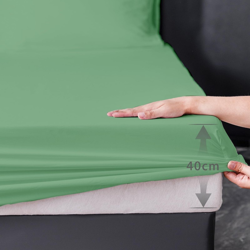 MIKI WELL Double Fitted Sheet Deep - Green Bottom Sheet Extra Deep Pocket 16 inch 40 cm, Soft Microfiber Double Bed Sheet Wrinkle Resistant & Breathable