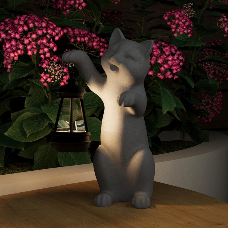 mikilov Cat Resin Statue with Solar Lantern (Hand Statue Decoration, Lawn Statue, Garden Home Decor, Sculpture Ornament, Animal Figure for Balcony Garden