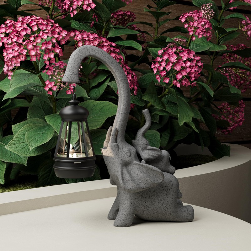 mikilov Elephant Resin Statue with Solar Lantern (Back Statue Decoration, Lawn Statue, Garden Home Decor, Sculpture Ornament, Animal Figure for Balcony, Garden