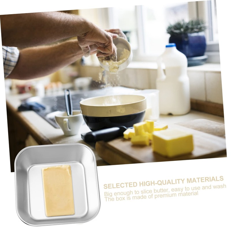 butter plate It is a butter storage box, and is one of the most sturdy and practical kitchen utensil you could ever have.hard butter holder It is a square stainless steel storage box with a cover for convenient use.stainless flatware You can use it to store any type of solid butter or cream cheese