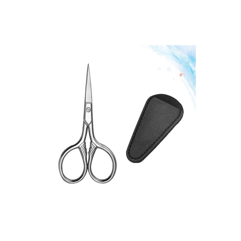 Mikinona 1set Portable Beard Scissors and Beauty Scissors for Facial Hair Small Makeup Tool Pu Cover and Precision Blades for Home and Salon Use