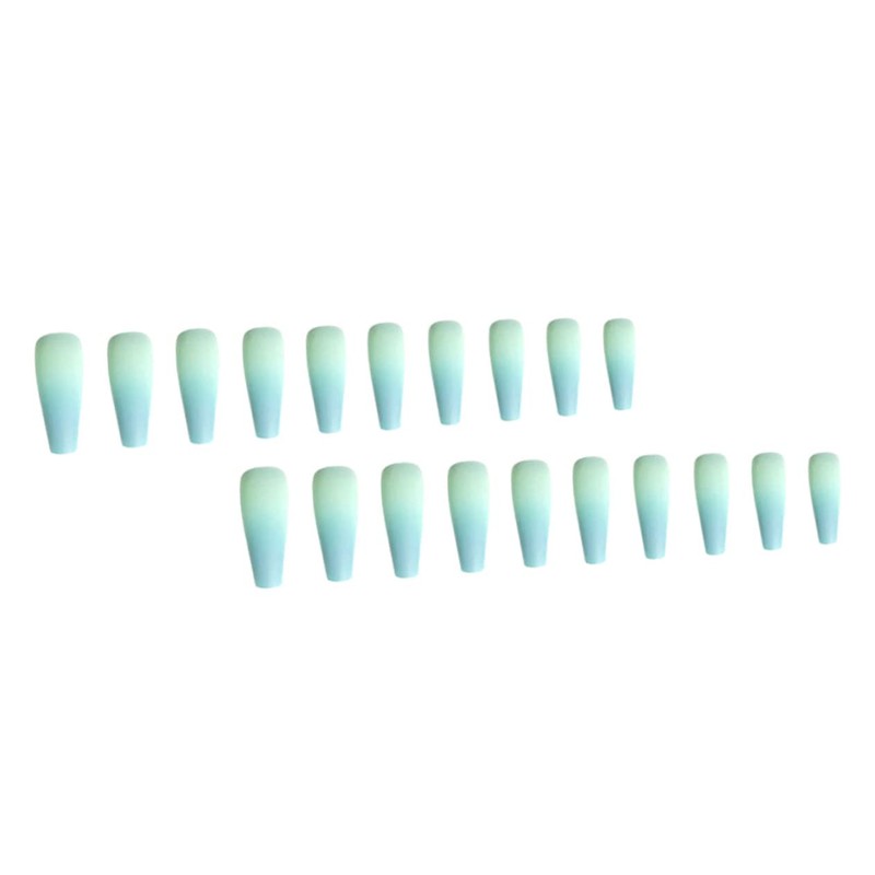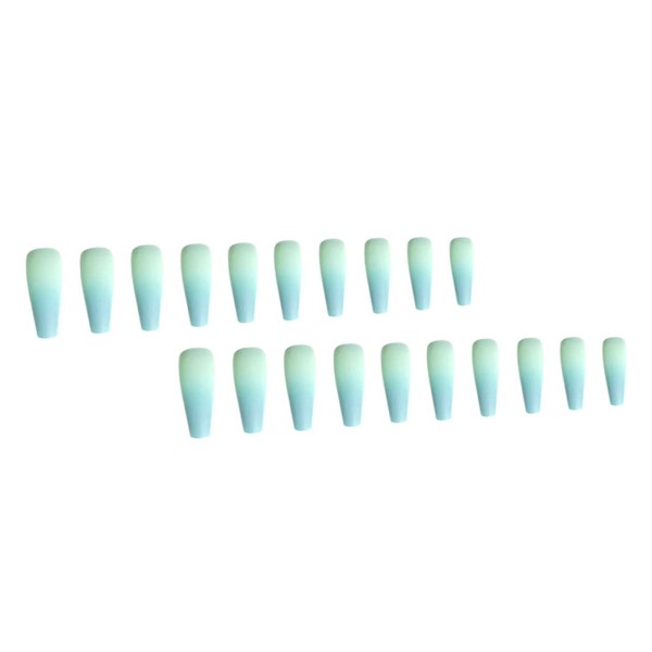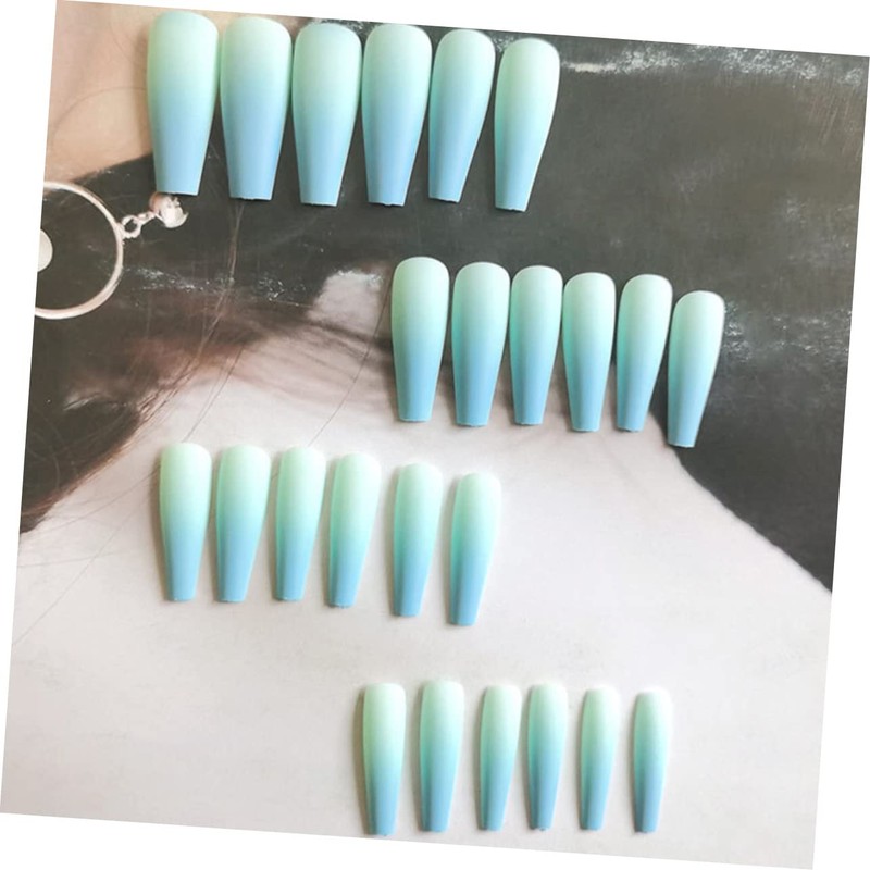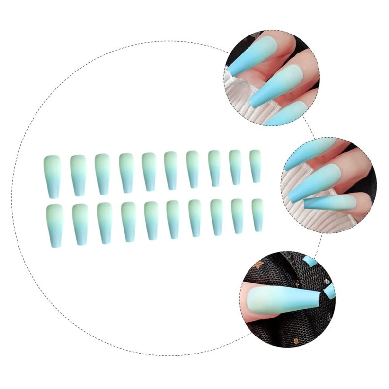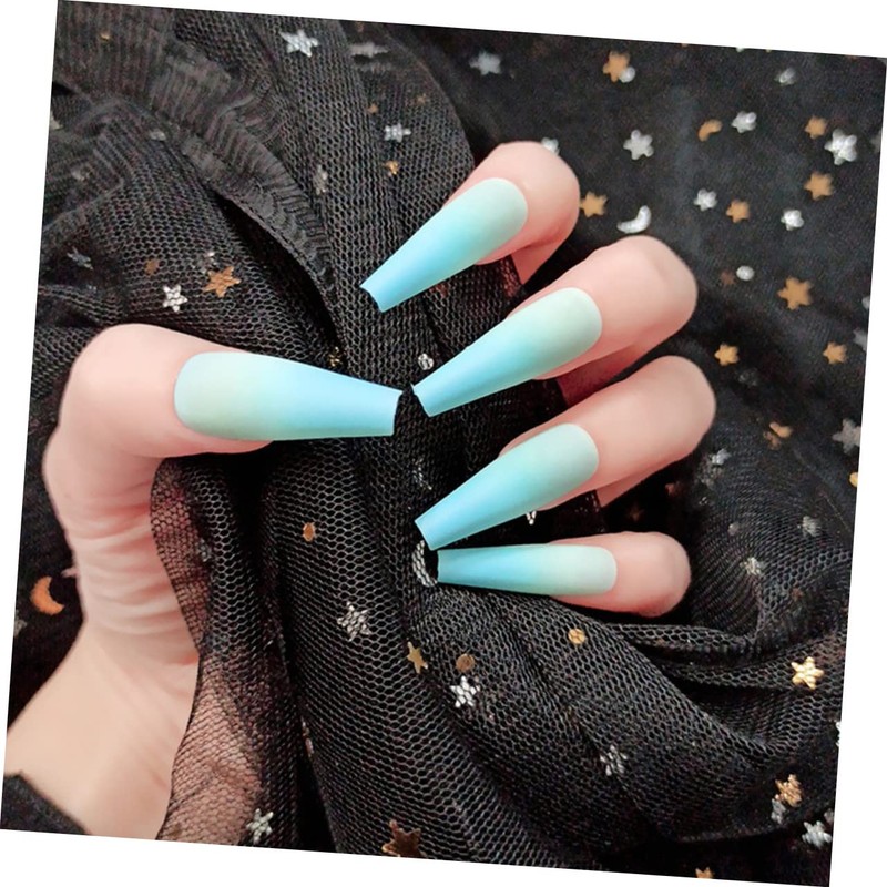 - Color: Gradient blue French Coffin False Nails