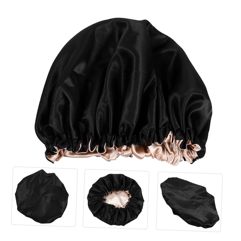 Mikinona Bath Cap for Shower and Bath Makeup Hair Cap Elastic Edge Satin Double Layers Night Sleep Cap for Women