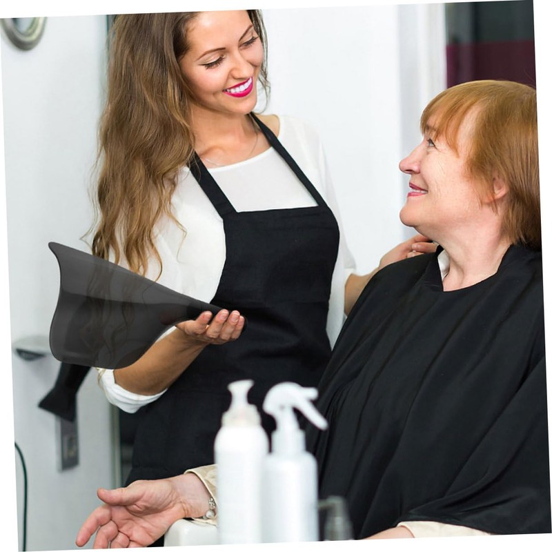 fade guard It shields the from hair sprays, dyes, and other products, ensuring a clean and comfortable experience.hairspray for The ergonomic handle allows for easy maneuvering and positioning.accidental This black facial guard with a handle is designed for barbershops and hair salons to protect clients during haircuts, dyeing, and other hair treatments