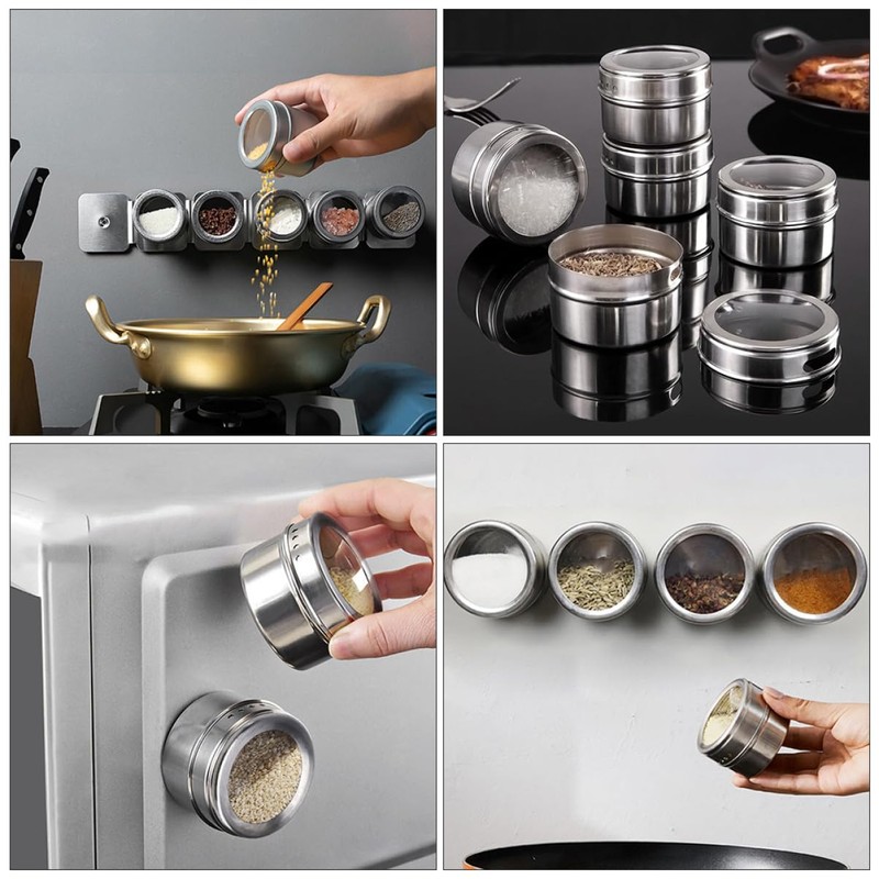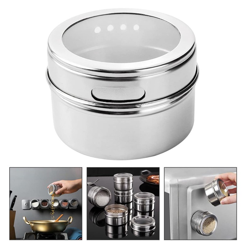 • Magnetic spice jar: these spice tins are made with food- grade stainless steel material, safe and healthy for kitchen and dining use.