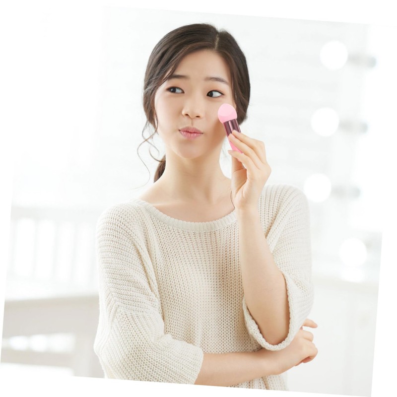 pink powder puff These lovely and practical makeup sponge pens are made of for safe use.foundation sponge with handle tools for you to blend foundation, concealer, blush, highlighter and also could be used for other makeups as well.beauty tools and store for cleaning use
