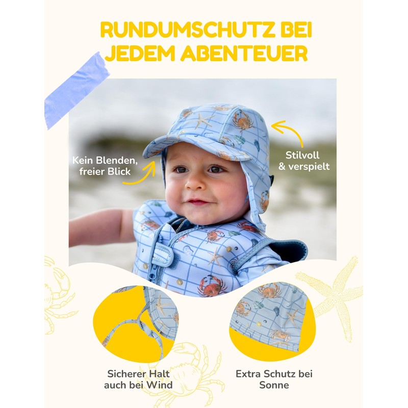 • All-round protection for head and neck - This baby summer hat from Mikk-line offers optimal protection on sunny days. With integrated peak at the front and extended neck protection, it reliably covers sensitive areas. Ideal for the beach, playground or garden.