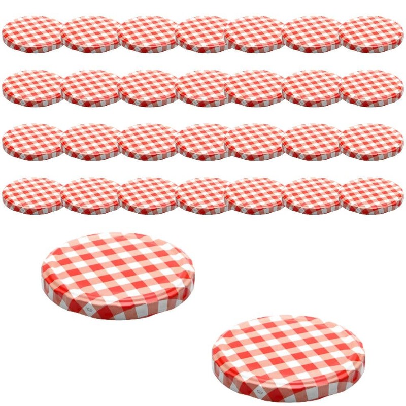 - 30 red / white chequered screw lids for jam jars, preserving jars TO 82, with an outer opening diameter without thread approx. 77.4mm Outer diameter of the lid 8.5 cm.