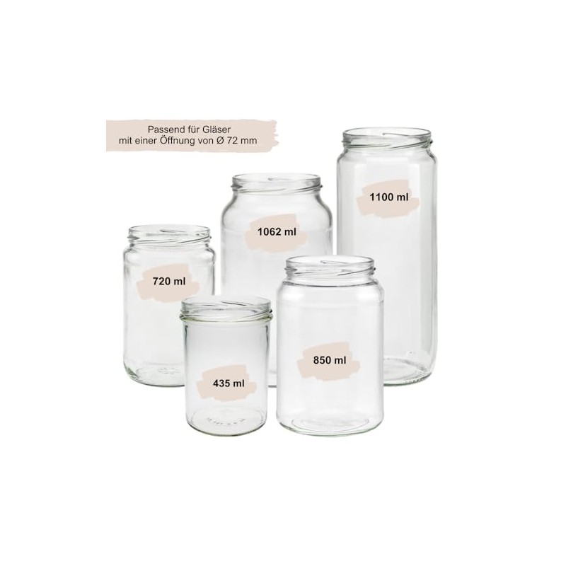 - The lid can be heated up to 100 degrees (pasteurisable) and can also be used for oil-containing filling goods.