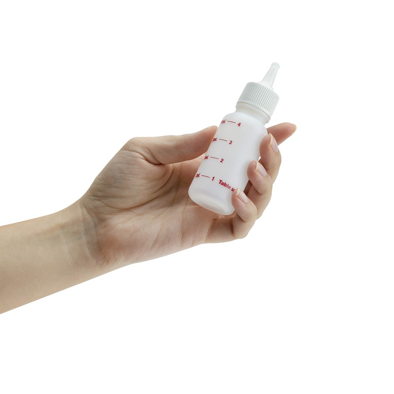 - COMPLETE KIT - includes bottlewith teat (approx. 50ml capacity), spare teat and bottle cleaning brush