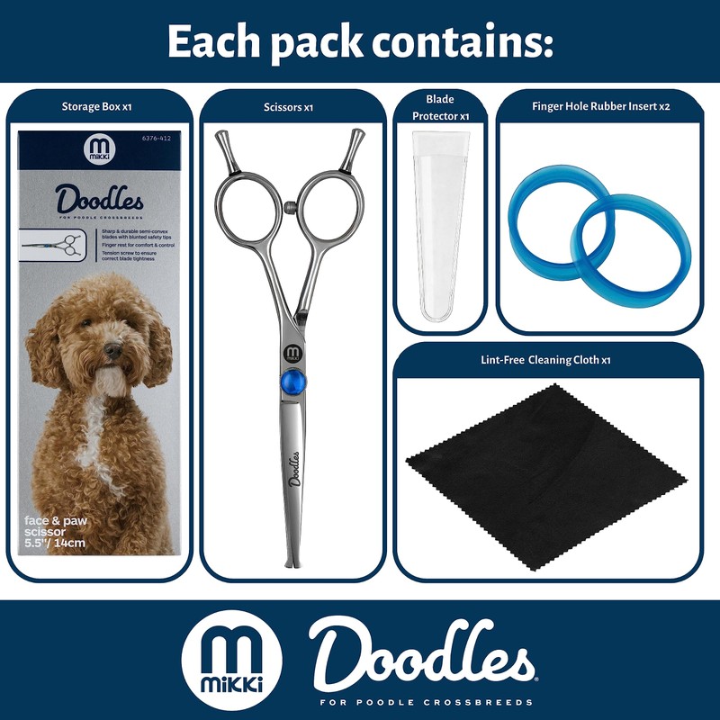 Mikki Doodle Dog Puppy Face and Paw Scissors Sharp and Durable Semi-Convex Blade Adjustable Tension Screw for Face and Precision Sensitive Areas 14cm