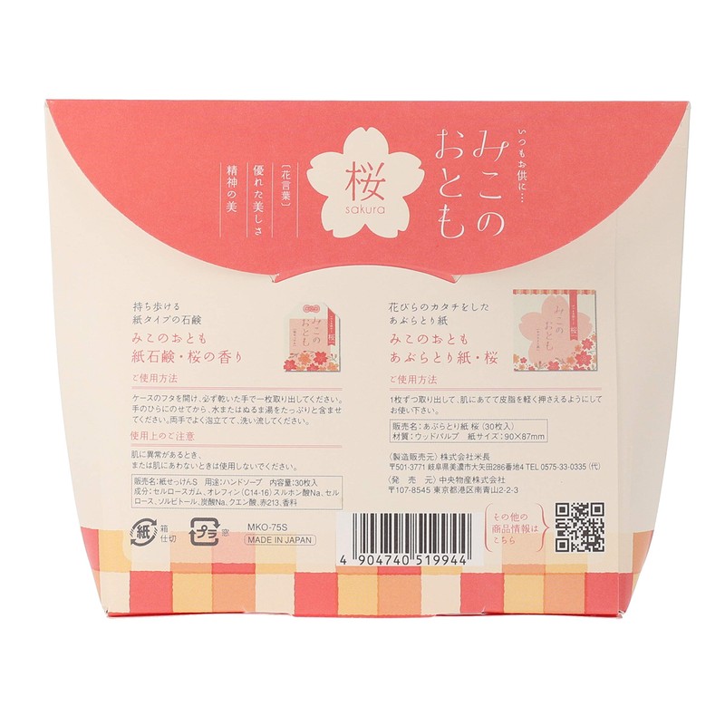 Miko Companion Paper Soap and Oil Blotting Paper Set, Cherry Blossoms, 5.4 x 1.2 x 4.3 inches (138 x 30 x 111 mm)