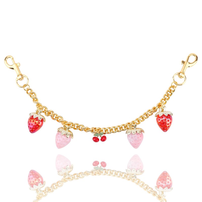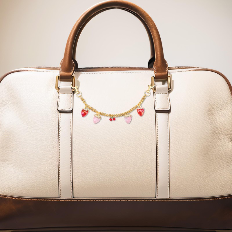 - Fruit Charms: Our gold keychain uses bright and realistic cherries and strawberries as embellishments, fashion holiday style, playful and fashionable without losing its elegant temperament.