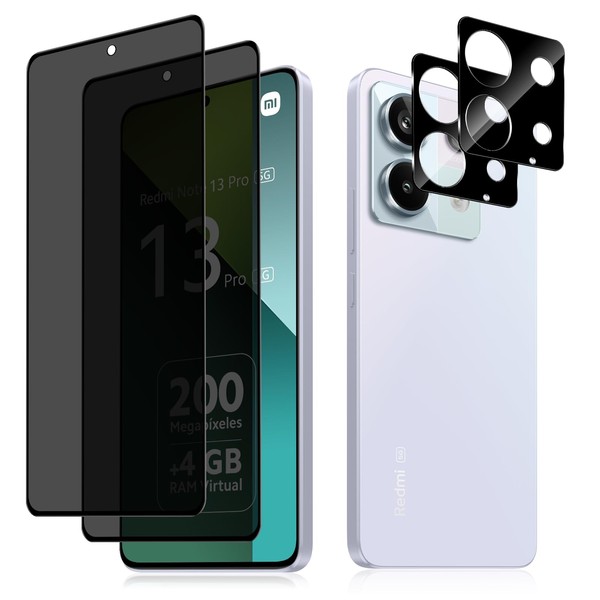 MiKoyi for Xiaomi Redmi Note 13 Pro 5G Privacy Screen Protector 2 Pack + Camera Lens Protector 2 Pack, Anti-Spy Tempered Glass Film, Scratch-Resistant, 9H Hardness for Xiaomi Redmi Note 13 Pro 5G