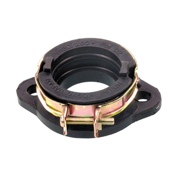 Genuine Mikuni rubber flange adapter. For use with mounting a spigot style carburetor to a bolt on manifold type application. Includes clampSold exactly as shown.MEASUREMENTSBolt Hole Spacing 70mm-75mmCarb Spigot Diameter 43mmThroat Depth 28mmTypical Carb Size 36mm-40mm