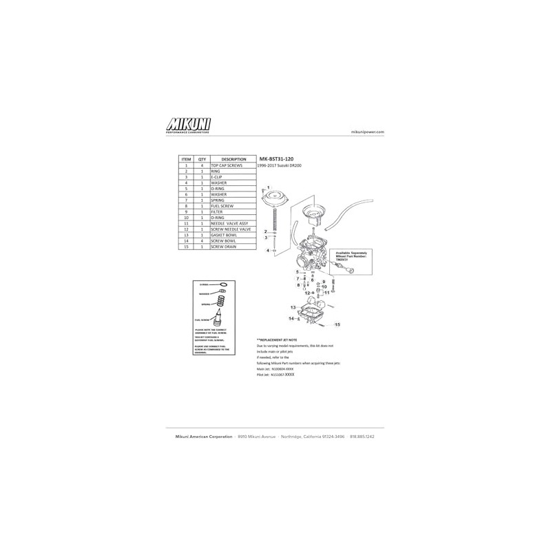 - Due to model variations, this kit does not include Main Jets, Pilot Jets or Needles