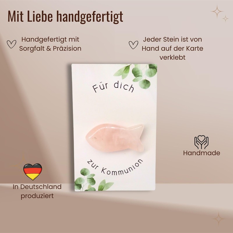 Milaboo® Communion Gift - Rose Quartz Gemstone Fish 3-4 cm as Good Luck Charm for Communion (Communion)