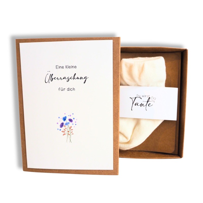 Milaboo Geschenkbox zur Schwangerschaftsverkündung – Du wirst Oma, Opa, Tante oder Onkel – Personalisierte Überraschung mit Babysöckchen – Liebevolle Ankündigung für Familie (Tante)