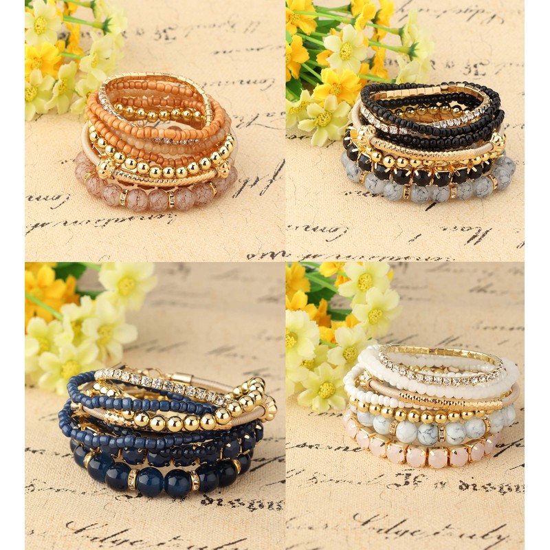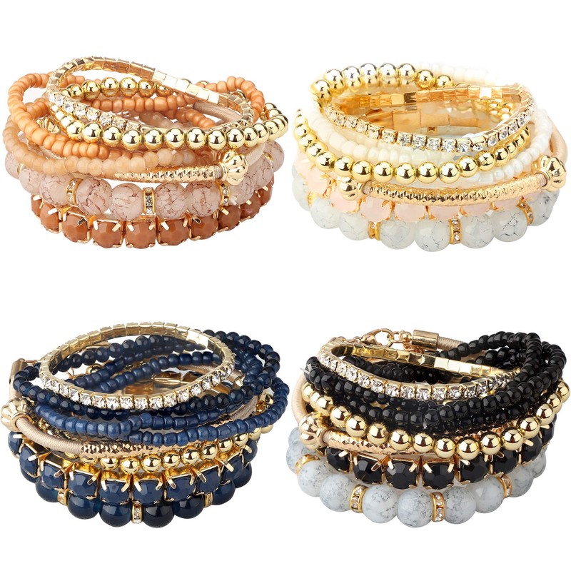 - AFFORDABLE SET: One set comes with 4 sets bohemian style multilayer beaded bracelets for women. reasonable price to purchase. A set of bracelets can add some color to your daily wear. Different style clothes should mathch different style jewelries.You can wear the whole set or choose some pieces to wear.Up to U!