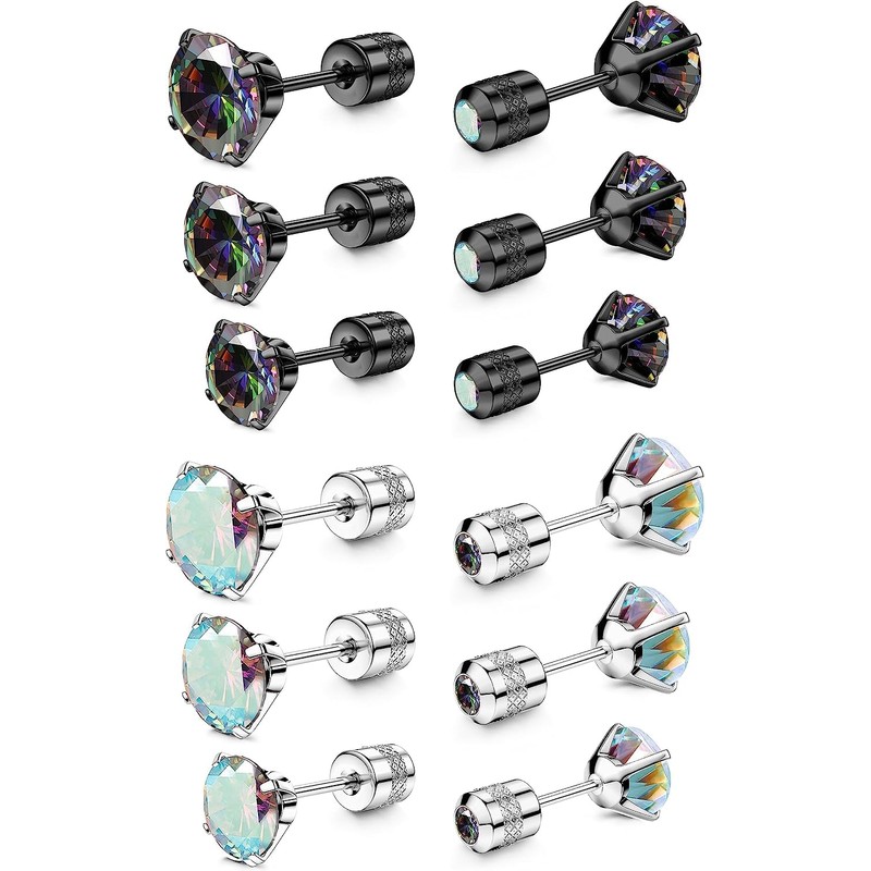 - Secure screw back and size: each pair of earrings is designed with internal thread to stay safe, no loosening, no falling off, no worry of losing, easy to put on and take off. Four claw design holds the stones firmly and can be used as sleep earrings, cartilage earrings or everyday earrings. Pin length: 6 mm, 20 g (0.8 mm size).
