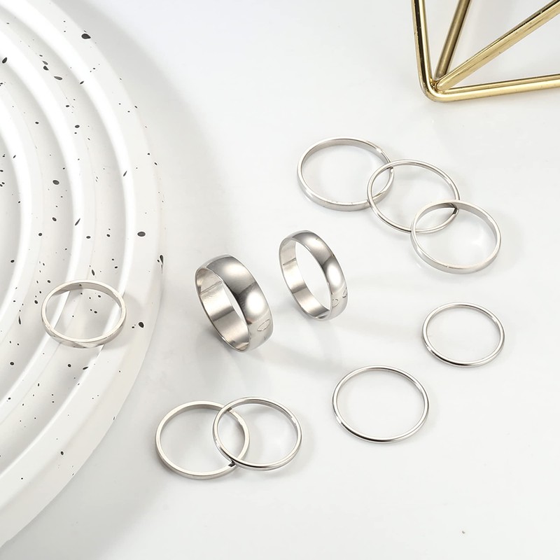 - ❤️MULTI-SIZE OF FINGER RING❤️ Include 10 Pcs simple rings and provide you with 7 sizes to suit your different fingers for stacking and creating cool looks. They are very lightweight but sturdy, and don't wear out or break easily.